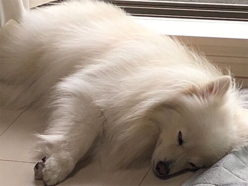 窓際で気持ち良さそうに熟睡中。どんな夢を見ているのやら。