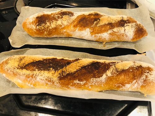 娘が朝からバゲットを焼いてくれました。チーズとバジルペーストを挟み込んで頂きました。美味しい!専属のパン職人がいるようなものです。今日も美味しいパンに感謝です。